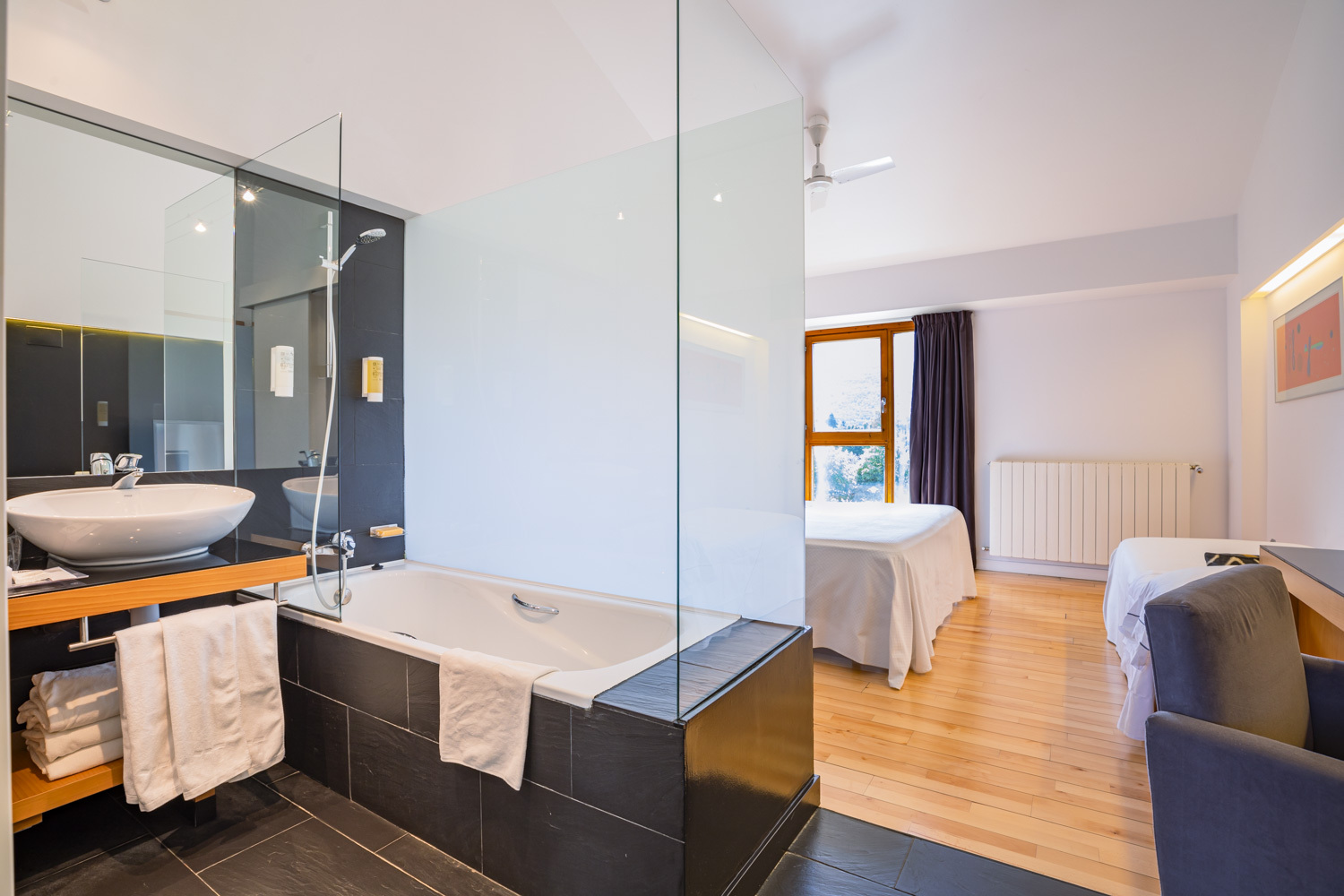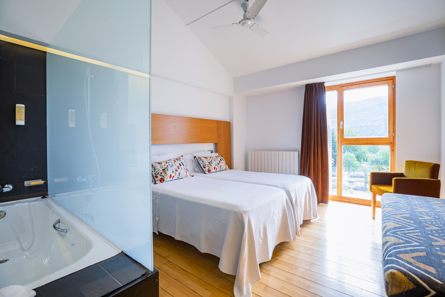 Alojamiento luminoso y cómodo, perfecto para relajarse después de un día en los Pirineos de Huesca Ofrece dos camas individuales (90x190 cm) o una cama doble (180x190 cm) con sábanas de suave algodón, además de un sofá de tres plazas que se convierte en una cama adicional de 80x190 cm. Baño completo y un cómodo sillón de lectura. Ideal para familias, parejas o viajeros que buscan comodidad, tranquilidad y una ubicación privilegiada para descansar y desconectar en plena naturaleza, con todas las comodidades para una estancia relajante.